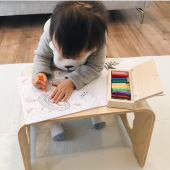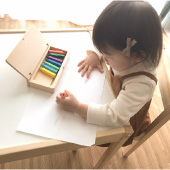 書き心地は色鉛筆みたいにしっかりしてて、形は子どもが持ちやすいサイズ、六角形!色もたくさん。ケースは木で作られててデザインも可愛い!万が一、口に入れてしまっても安全な素材で作られてるところもGOOD!これプレゼントしたら絶対喜ばれるやつ!