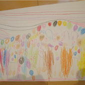 くれぴつは手が汚れないから本当に助かる!そして折れない!描き始めるとちゃんと色が出て、末っ子でもたくさん描くことができました。