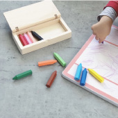 クレヨンみたいに紙で包まれてないから、横に倒しても使えて自由自在でしたケースの木箱も可愛いです。